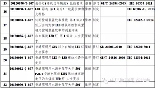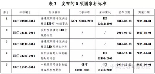 2014-2015年全國照明電光源及附件標準制修訂和發布情況
