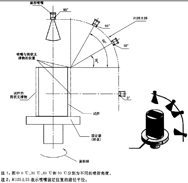試樣臺轉速:5r/min,噴水時間:30s,流量:(14~16)L/min,溫度:(80±5)℃,壓力:( 0~12)MPa