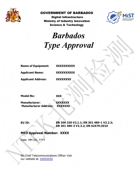巴巴多斯的電信部門(Telecoms Unit)簡稱為”TU”,負責監管該國的型式認證 ,電信部門由巴巴多斯政府設立。該部門目前隸屬于創新、科學和智能技術部。電信部是負責電信的部的技術部門。該部門的使命是促進競爭性、完全自由化的電信行業,同時實現政府的愿景使巴巴多斯成為加勒比地區信息技術和電信的卓越中心。該部門根據《電信法》第 282B 章履行監管和許可職能。