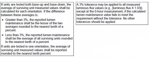 對于固態燈泡的流明維持將和V1.1要求一致,主要指上報值的規則及3%的公差使用。此項在草稿1中被遺漏了。如下圖所示: